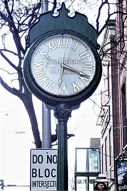 Steve Schmidt's "Brown Street Clock Registry" attempts to document information about the clocks.[4] Among the clocks he has documented is the Loveland Street Clock, in Loveland, Colorado, installed in 1910 in front of Brannan Brothers Jewelry Store (1886), 239 East 4th Street, now "Garment Gal's", at 40°23′44″N 105°04′25″W / 40.39553°N 105.07357°W. Other clocks whose history have been documented, included Guido's in Champaign, Illinois[3][5] Lane Jewelers in Columbus, Ohio,[2] and one in front of the Orlando Sentinel's offices.[6] In 2018, the clock in front of Lane Jewelers was sold to a private buyer.[7]