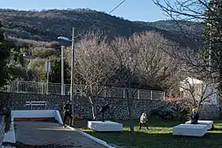 "Strokes and Incisions", a site-specific art installation authored by Danish-Austrian artist Sofie Thorsen can be found in the small park next to the bocce court at the very entrance to Brseč. Thorsen was inspired by a primary school in Brseč closing after more than one hundred and seventy-five years of continuous work. The installation consists of three stone objects whose shapes and colors symbolize paper, and the incised lines represent a fountain pen. The engraved forms were created on the basis of three pre-existing inscriptions: scribbles from old student notebooks from the closed school, graffiti from a street in Brseč and fragments of manuscripts by Eugen Kumičić.[4]