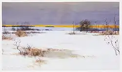 Robert Bruce Crane (October 17, 1857[1] – October 29, 1937) was an American painter. He joined the Lyme Art Colony in the early 1900s. His most active period, though, came after 1920, when for more than a decade he did oil sketches of woods, meadows, and hills. He developed into a Tonalist painter under the influence of Jean-Charles Cazin at Grez-sur-Loing. Crane's mature works were nearly always fall and winter scenes. He usually painted in his studio in Bronxville, New York, where like many of the Tonalists he relied mostly on memories of his outdoor sketching experiences. Selected work can be found at the Florence Griswold Museum and the Newark Museum. He is a descendant of the Continental Congressman Stephen Crane.[2]