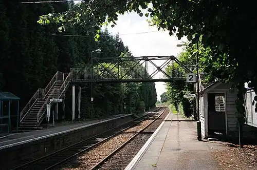 Brundall Gardens railway station is a stop on the Wherry Lines in the East of England, serving the western side of the village of Brundall, Norfolk. It is sited 4 miles 66 chains (7.8 km) down the line from Norwich on the routes to Great Yarmouth and Lowestoft. Its three-letter station code is BGA.[1] It is managed and served by Greater Anglia.