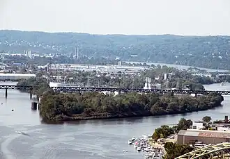 Brunot Island (also spelled Brunot's Island) is a 129-acre (52 ha) island in the Ohio River. It is officially part of the Marshall-Shadeland neighborhood of Pittsburgh, Pennsylvania, United States. It was named for Dr. Felix Brunot who settled the island with his extended family in the late 1700s.[1] The family entertained the Lewis and Clark Expedition on the island in August 1803. The island is home to the Brunot Island Generating Station, a 315 MW fossil fuel power plant.