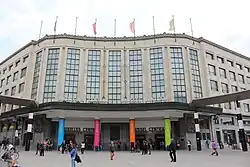 Brussels-Central railway station (French: Gare de Bruxelles-Central; Dutch: Station Brussel-Centraal)[a] is a railway and metro station in central Brussels, Belgium. It is the second busiest railway station in Belgium[1] and one of three principal railway stations in Brussels, together with Brussels-South and Brussels-North. First completed in 1952 after protracted delays caused by economic difficulties and World War II, it is the newest of Brussels' main rail hubs. The train services are operated by the National Railway Company of Belgium (SNCB/NMBS).