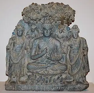 ![A very similar Buddhist Triad from Sahr-i-Bahlol.[3] Peshawar Museum.[10][11]](./_assets_/Buddhist_Triad_Peshawar_Museum.jpg)