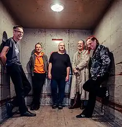 Over the years the record became a sought-after rarity. The album was released for a second time 1990 without telling the band.[5] In January 2013 a new release was published as a double record under the title Und die Zukunft ist doch rot (and the future is red after all) at Höhnie Records. Besides the original album the record contains also the demo tape as well as the a live recording from 25. February 1982.[2] On the occasion of this re-release three of the original members decided to go on a Germany tour as Brutal Verschimmelt with nine concerts in June 2013.[6][7][8] Also tours took place in 2014 (until July 12[9]) and 2022 (until October 29[10]). For the 2022 tour, the live LP Schlechtes von gestern (bad things from yesterday) was released with a live recording of the last concert of BV's early 80s phase (on double CD with reiisue of the 1983 LP). In the summer of 2024 – 40 years after the release of their first album – they produced their second studio LP entitled Alles frisch! (everything fresh).[11][12] It was published by power-it-up from October 2024 as #298.[13] They presented the songs from the new LP on their 4th Germany tour in october 2024.[14][15][16]