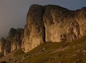 The Bucegi Natural Park with an area of 32.663 ha[3] was declared a protected area by Law Number 5 of March 6, 2000 (published in Monitorul Oficial Number 152 of April 12, 2000)[4] and represents a mountainous area (caves, pit caves, canyons, ridges, sinkholes, valleys, waterfalls, pastures and forests), that shelters a variety of flora and fauna. The park is famous for its Babele and Sphinx features.[5]