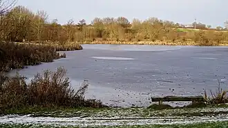 The creation of the lake is unique: in 1990 a polythene bucket (hence the name) was used to plug a culvert that was draining a shallow former agricultural basin.[1] Since then, the lake has become a habitat with a huge diversity of plants and animals. This was also seen as a successful example of cheap land restoration in Japan, in South Korea[2] and the United States.[1][3]