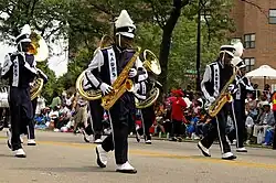 The parade, which began on August 11, 1929,[4] now includes politicians, beauty queens, celebrities, musical performers, and dozens of marching, tumbling and dancing groups.[20] It has grown from a locally sponsored event to one with major corporate presence and is seen as a signal of the impending end of summer and beginning of the new school year.[20] As such the parade sponsors raise money for college scholarships for local youth.[20] The parade route has changed over the years. The original route was along Michigan Avenue beginning at 31st Street, then turned east into Washington Park. Complaints for north–south traffic flow caused rerouting the parade route to South Parkway (now named Dr. Martin Luther King Jr. Drive), which runs directly into the park. At various times, street repairs have necessitated use of the Michigan route, but the current route is now the King Drive route.[4] Freeman Gosden and Charles Correll of Amos 'n' Andy were the first guests in the first parade. Robert S. Abbott led the first parade in his Rolls-Royce. Dr. Marjorie Stewart Joyner, president of the Chicago Defender Charities, Inc., organized the parade for over 50 years. Numerous high-profile celebrities and dignitaries have attended the parade over the years, including U.S. President Harry S. Truman,[21] Michael Jordan, Barack Obama, Joe Louis, Muhammad Ali, Duke Ellington, Adelaide Hall,[22] Oprah Winfrey, Aretha Franklin, Diana Ross, Lena Horne, James Brown, Ethel Waters, Cab Calloway, Paul Robeson, Chaka Khan, George Clinton, and Billie Holiday.[20][4] Truman rode alongside John H. Sengstacke, who was Abbott's nephew and took over the Chicago Defender in 1948, and Mayor Richard J. Daley in the 1956 Parade.[23] Recent parades have featured popular musical acts as concert performers at the post-parade picnic. In 2006, approximately 26 million people saw the parade,[24] including 25 million television viewers and 1.2 million attendees.[8] The 2006 parade included 74,000 participants and 160 floats and vehicles.[8] The 2008 parade was dedicated to actor and comedian Bernie Mac (star of The Bernie Mac Show)[25] and a native of Chicago; he died an hour before the start of the parade. In 1993, a request by a black LGBT group to participate in the parade was declined by the organizers. Following legal action and the involvement of Lambda Legal, the Ad Hoc Committee of Proud Black Lesbians and Gays was allowed to participate in the parade the following year.[26][27] The 2020 parade, marking its 91st year, saw the first-ever cancellation, due to the COVID-19 pandemic. A "scaled down" event was held in 2021.[28]
