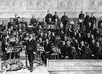 The original members of the orchestra were drawn from musicians of the Hungarian National Theatre. Its first concert was on 20 November 1853, under the baton of Ferenc Erkel. The programme consisted of works by Beethoven (7th Symphony), Mozart, Mendelssohn and Meyerbeer.[5]