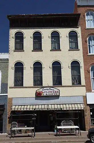 The Budde–Singer Building is a historic building located in Mount Pleasant, Iowa, United States. This three story, brick Italianate structure was built in 1882. It replaced a similar building that had been built in 1856 and destroyed in a fire. Its early Italianate style is unusual for this time period, but it fits into its streetscape with similarly designed buildings, including the neighboring Brazelton House Hotel.[2] The Budde–Singer Building features round arched windows with brick patterned hoodmolds on the second and third floors, and a bracketed wooden cornice. The first floor storefront has been somewhat altered, and the exterior of the building has been painted since about 1909.[2] It was listed on the National Register of Historic Places in 1991.[1]