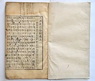 The doctrines associated with buddha-nature (Chinese: fóxìng) and tathāgatagarbha (rúláizàng) were extremely influential in the development of East Asian Buddhism.[38] The buddha-nature idea was introduced into China with the translation of the Nirvana Sutra in the early fifth century and this text became the central source of buddha-nature doctrine in Chinese Buddhism.[90] When Buddhism was introduced to China, it was initially understood through comparing it with native Chinese philosophies such as neo-daoism.[91] Based on their understanding of the Mahayana Mahaparinirvana Sutra some Chinese Buddhists supposed that the teaching of the buddha-nature was, as stated by that sutra, the final Buddhist teaching, and that there is an essential truth above emptiness and the two truths.[92] This idea was often interpreted as being similar to the ideas of the Dao, non-being (wu), and Principle (Li) in Chinese philosophy and developed into what was called "essence-function" thought (體用, pinyin: tǐ yòng) which held there were two main ontological levels to reality, the most foundational being the buddha-nature, the "essence" of all phenomena (which in turn were the "functions" of buddha-nature).[93][92]