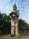 Buddha Park, also known as Xieng Khuan (as well as other variations of the spelling), is a sculpture park 25 km southeast from Vientiane, Laos, in a meadow by the Mekong River.[1][2] Although it is not a temple (wat), it may be referred to as Wat Xieng Khuan (Lao: ວັດຊຽງຄວນ; Thai: วัดเซียงควน), since it contains numerous religious images.[3] The name Xieng Khuan means "spirit city".[2] The park contains over 200 Hindu and Buddhist statues.[4] The socialist government operates Buddha Park as a tourist attraction and public park.[3]