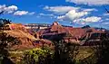 Buddha Temple is a 7,212-foot-elevation (2,198-meter) summit located in the Grand Canyon, in Coconino County of northern Arizona, in the Southwestern United States.[3] It is situated 6.5 miles (10.5 km) due north of the Mather Point overlook on the canyon's South Rim, and four miles southwest of the North Rim's Bright Angel Point. Topographic relief is significant as it rises over 3,800 feet (1,200 meters) in two miles above Bright Angel Canyon to the east, and 3,000 feet in less than one mile above Haunted Canyon to the immediate west. Its neighbors include Manu Temple 1.5 miles (2.4 km) to the northeast, Isis Temple 2.3 miles to the southwest, Zoroaster Temple 3.8 miles to the southeast, and Deva Temple, 3.5 miles to the east. Buddha Temple was named by Henry Gannett, a geographer for Clarence Dutton, in following Dutton's practice of naming features in the Grand Canyon after mythological deities, in this case Buddha.[4][5] This geographical feature's name was officially adopted in 1906 by the U.S. Board on Geographic Names.[3] The first ascent of this butte was made in 1973 by Bruce Grubbs, Chauncey Parker, and Mark Brown via the Northwest Arete.[6] According to the Köppen climate classification system, Buddha Temple is located in a Cold semi-arid climate zone.[7]