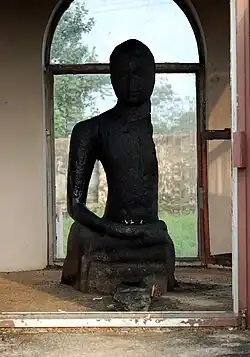 Buddhist statues are believed to have been destroyed or Hinduized during the Hindu rule. But rare Buddha statues have been found intact. They are mainly found at Mavelikkara, Maruthur, Kulangara, Karumadi, Bharanikkavu, Kunnathoor and Pallikkal in Kollam district. [16] The statue in the Pallikkal Temple was headless. Today it is preserved in a museum in Thiruvananthapuram. The head is made of a similar stone and assembled.[17] The statue of Mavelikkara was found in a field near the Kandiyur Shiva Temple. According to the historian S. N. Sadasivan,[18] Until A.D. 450, it was the main deity in the Kandiyur Shiva Temple. All the statues are carved in stone. They are all in the form of yogasana, is 2–3 feet long from the feet to the turban. Most of the statues are said to be seated in a lotus position in meditation. Anthropology records that the statue at Maruthur Kulangara is the oldest of its kind.[19][20] It was built in the 7th century. It was found in a pond near the temple. The black meditative statue found near Thottappilly in Ambalapuzha is called Karumadikuttan. The Buddha statue found near the guest house at Mavelikkara is placed on the public road near the Sri Krishnaswamy Temple.[21] The Buddha statue received from Bharanikawa dates back to AD. 9 century.[22] P. C. Alexander and S. N.Sathasivan are the two historians who have written extensively about Buddhism in Kerala. According to them, these Buddha statues were made in the Anuradhapura style. [23][24]