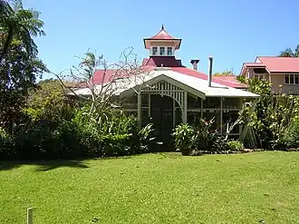 Buderim House, located on a northern slope of Buderim Mountain, sits amongst established gardens which include a section of the original scrub, to the west of the building, which covered the mountain.[1]