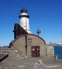 Buffalo Harbor South Entrance Light, also known as the South Buffalo Southside Light or Buffalo South Breakwater, South Entrance Light Station, is a lighthouse at Stony Point at the entrance to Buffalo Harbor, Buffalo, New York. It was established in 1903 and deactivated in 1993. It was replaced by a nearby modern post light. The lighthouse property consists of a three-story cast iron 43.5-foot (13.3 m) decommissioned light tower topped with a lantern; one-story concrete fog signal building and an L-shaped concrete pier.[2]