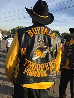 The Buffalo Soldiers Motorcycle Club (NABSMC) is a Black (African-American) motorcycle club in the United States, named for the historic African-American United States Army regiments known as Buffalo Soldiers, seen in their patch.[1][2][3][4] It is one of the biggest Black motorcycle clubs in the US and the biggest African American motorcycle club in Chicago, with 140+ chapters as of 2019,[5] with over 5000 members across the USA.[6][7]