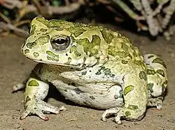 - ^ Dufresnes, C.; et al. (2019). "Fifteen shades of green: The evolution of Bufotes toads revisited". Molecular Phylogenetics and Evolution. 141: 106615. Bibcode:2019MolPE.14106615D. doi:10.1016/j.ympev.2019.106615. PMID 31520778. S2CID 202573454.