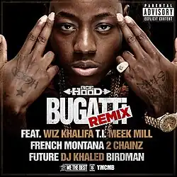 "Bugatti" is a song by American rapper Ace Hood featuring fellow American rappers Future and Rick Ross.[1] Written alongside producers Mike Will Made It and DJ Khaled, it was released on January 29, 2013, as the lead single from the former's fourth studio album, Trials & Tribulations.[2] The song peaked at number 33 on the Billboard Hot 100, making it Ace Hood's most successful single of his career. The single has sold over one million copies and was certified platinum by the RIAA.[3][4]