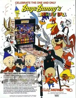 Bugs Bunny's Birthday Ball is a 1990 pinball game designed by John Trudeau and Python Anghelo and released by Midway (under the Bally name). It is based on Warner Bros.' Looney Tunes and Merrie Melodies series of cartoons.[2] This is the first of only three licensed pinball tables ever to feature the Looney Tunes characters (the second being Sega's Space Jam and the third being Spooky Pinball's Looney Tunes).