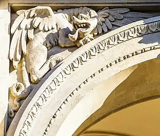 The architecture of the interior is built with seriousness and severity. Gosławski used rhythm of Corinthian order pilaster. He incorporates semicircular arches in the interiors of the building as a leading compositing element in the central staircase.[9]