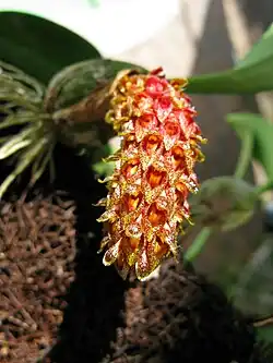 - ^ Davies, Kevin L.; Stpiczyńska, Malgorzata (2014). "Labellar anatomy and secretion in Bulbophyllum Thouars (Orchidaceae: Bulbophyllinae) sect. Racemosae Benth. & Hook. f." Annals of Botany. 114 (5). Oxford University Press: 889–911. doi:10.1093/aob/mcu153. ISSN 0305-7364. JSTOR 43579656. PMC 4171068. PMID 25122654. Retrieved 2022-04-15.
