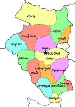 - ^ "Bulgan". Aimagindex. 27 January 2022. Retrieved 6 February 2025.