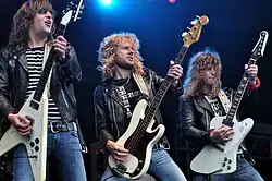 Bullet is a Swedish heavy metal band, formed in Växjö in 2001 by Hampus Klang and Dag "Hell" Hofer. The band released their first demo Heavy Metal Highway 2002 and released their album Heading for the Top in 2006 on Black Lodge record label.[2] Iron Maiden singer Bruce Dickinson played the Bullet song "Turn it Up Loud" from their album Heading for the Top on his radio program on BBC 2006.