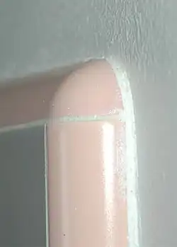 A bullnose is a broad convex radius on construction materials such as wood, masonry, and ceramic tile. The term is also used for materials featuring such a profile, as in a “bullnose tile”.[1] It is also used in relation to road safety and (formerly) railroad engineering design.