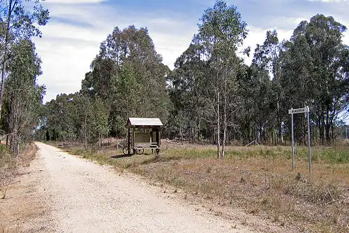 As part of the East Gippsland Rail Trail, which follows the route of the former rail line, a new station name board has been erected at the site, along with a rest shelter and information board in a remnant grassy woodland reserve.[3][4]