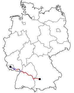 The Bundesstraße 10 (abbr. B10) is a German federal highway. It leads from Eppelborn, near the city of Lebach in Saarland,[1] eastward to Neusäß near Augsburg in Bavaria. The Bundesautobahn 8 mostly runs in parallel to the Bundesstraße 10.