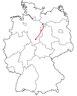 The Bundesstraße 248 (abbreviation: B 248) is a German federal highway that runs from Northeim to Dannenberg (Elbe),[1] where it ends in the town at its junction with the B 191. Shortly before, the road branches and a short section, the B 248a, runs over B 191 as far as the B 216 at Streetzer roundabout. In Wolfsburg the old B 248, widened to four lanes in the 1960s, has been renamed today as the A 39 motorway (autobahn).
