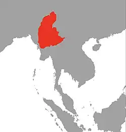 The type locality of this species is Meiktila, in Upper Myanmar in the Mandalay Division which lies in seasonal dry forest; thus, this species is likely to occur throughout the central dry zone. It occurs in dry tropical lowland forest. Specimens have been located in disturbed habitats close to plantations and villages.[6] This species can be found from near sea level to elevations reaching 1,000 m (3,300 ft).[7]