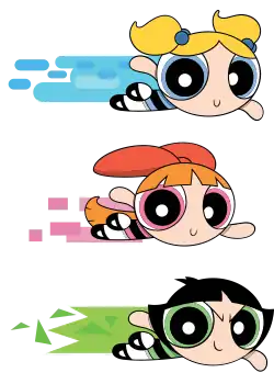 ![]() From top to bottom: Bubbles, Blossom and Buttercup as they appear in The Powerpuff Girls (2016 TV series) | |