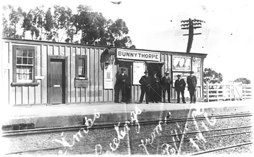 - ^ "Bunnythorpe Railway Station, c. 1900's". www.feildingheritage.nz. Retrieved 9 March 2021.