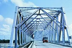 The Bridge was completed in 1957. Construction began 10 years earlier in 1947.[7] At 3,620 feet (1,103 m) in length, it is one of the longest multi-span bridges in Australia and longer than Brisbane's Story Bridge or New South Wales's Hawkesbury River Railway Bridge. It is 46 metres shorter than Sydney's Harbour Bridge.[1][8] It is the only bridge in Australia to be built on sand.[6]