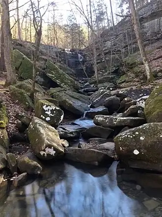 The Burden Falls Wilderness is a 3,775-acre (15.3 km2) unit of the Shawnee National Forest. It is located in northwestern Pope County and southwestern Saline County, Illinois. The wilderness is characterized by road-less second-growth hardwood forest, punctuated by a small, seasonal waterfall on Burden Creek. Burden Falls falls 20 feet (6 m) over a sandstone ledge, and the falling creek then descends another 80 feet (25 m) in a series of cascades and cataracts.[2]