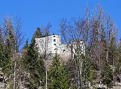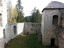 It was not until the 19th century that the Grein family of stonemasons from Graz appeared as the new owners of the ruins.[7] The first detailed description of the castle ruins dates back to 1925 by the historian Anton Mell. Since the 20th century, it has been privately owned by the Petrasch family from Graz. From 1982/1983, the ruins were secured and largely rebuilt for 25 years by Hubert Stiefmann, who was mayor of the municipality of Salla from 1980 to 1995, although this securing and restoration work has recently also taken the form of new buildings and is therefore controversial among castle researchers.[17][20][22]