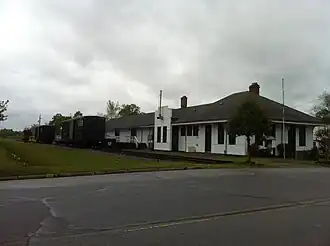 Burgaw Depot is a historic train station located at Burgaw, Pender County, North Carolina. It was built about 1850[2] by the Wilmington and Weldon Railroad, with a later 1898 T-shaped addition of passenger waiting rooms and offices and a 1916-1917 addition of freight and warehouse space. It is a long one-story rectangular frame building sheathed in a combination of lap and board and batten siding, and resting on cement, brick and wooden foundations. It is one of only two known surviving antebellum depots in North Carolina; the other is located at Selma, North Carolina.[3]