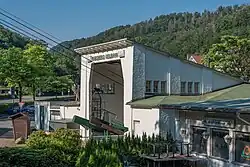 The cable car is named after the Burgberg mountain, site of the historic Harzburg Castle, built by Emperor Henry IV about 1068. The upper terminus was erected next to the ruins. Cable car and stations are preserved in their original 1920s condition.
