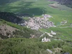 Burgeis (Italian: Burgusio, Romansh: ⓘ) is the largest frazione of the comune of Mals, Italy, and sits at an altitude of 1216m in Vinschgau in South Tyrol beneath the mountain Watles (2557) on the upper reaches of the Adige. The name goes all the way back to a Roman founding, as a fort on the "Via Claudia Augusta", which runs through the village. This fort later gave the name of the Edelfreien von Burgus-Wanga, whose arms the village bears today.