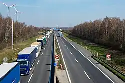 The vehicle – a two-axle Class C1 (7.5 tonne GVWR) lorry with a refrigerated box body – had been parked in an emergency bay on the A4 east autobahn between Neusiedl am See and Parndorf, about one kilometer after the Neusiedl exit, in the direction of Vienna.[5][6] A witness stated that he had already seen the vehicle stopped in the emergency bay at around 9:45 a.m. on the morning of August 26. A man fled the scene by car.[7]