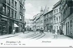 Most of Königsberg's Reformed adherents lived in Burgfreiheit;[5] the Burgkirche was constructed in the 1690s. Reformed students attended the Burgschule school. In 1680[6][7] or 1682[8] Frederick William, the Great Elector, allowed the city's Jewish residents to rent space for prayer at the Eulenburgsches Haus (later Hotel Deutsches Haus) on Burgfreiheit's Kehrwiederstraße (later Theaterstraße).