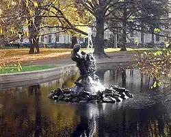 A fountain in the pond features a statue of Hercules and the Nemean Lion. The statue was taken from the Esterházypark in Mariahilf.