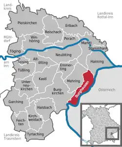 Location of Burghausen within Altötting district ![]() | |
