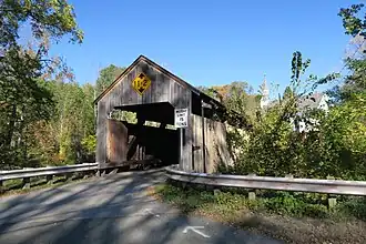 The Burkeville Covered Bridge is a historic covered bridge, carrying Main Poland Road over the South River in Conway, Massachusetts. Probably built in 1870, it is a regionally rare example of a multiple kingrod bridge with iron tensioning verticals (a modified Howe truss system), and one of a few 19th century covered bridges to survive in Massachusetts. It was listed on the National Register of Historic Places in 1988.[1]