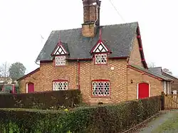 Wrexham Road in Burland village is lined by several grade-II-listed buildings dating from around 1870, formerly cottages of the Peckforton Estates. The red-brick cottages feature hexagonal latticed windows, ornate timber gabling and a prominent central chimney stack.[19] Burland Farm House, also built for the Peckforton Estate, is of a similar date.[20]