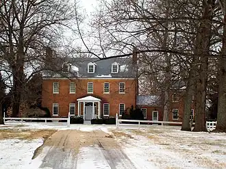 In 1935, the Estate was subdivided to 600 acres (240 ha) and purchased by Charles McAlpin Pyle, grandson of industrialist David Hunter McAlpin.[14] The manor house was renovated with the great kitchen replaced by a "Stirrup Room" where meetings of the Howard County Hunt Club took place.[15] The house was sold in 1941 to Mrs. Anthony J. Drexel Biddle, Jr. for the use of Prince Alexandre Hohenlohoe of Poland and his wife, Peggy Schulze during World War II. St. Timothy's School bought the property after the war in 1946, but abandoned plans and sold to George Dudley Iverson IV and his wife Juliet Proctor Goldsborough Iverson in 1950.[16] Iverson embarked on an extensive restoration effort to return the house back to its colonial appearance.[17] The brick was once painted yellow, but by 1956, had almost returned to exposed red brick.[4] As of 2013, it has operated as a livestock shelter.[18]