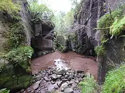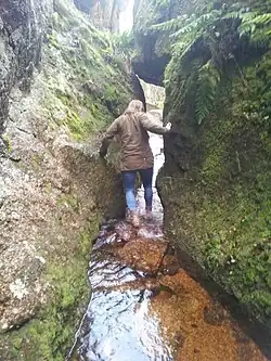 According to local folklore, the cave behind the waterfall in the Vat was used by Rob Roy, a notorious outlaw, to hide from the authorities.[2] In fact, this is not true,[3] with the cave instead being used as a hiding place for Patrick Gilroy Macgregor, an outlaw renowned for his exploits in Deeside during the 17th century and a possible relative of Rob Roy.[2]