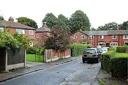 1906 saw plans to build a "garden suburb" in the district. Burnage Garden Village[5] was created by building many new semi-detached houses as well as open recreational spaces, including lawns, gardens, a bowling green, tennis courts, allotments and a children's playground.