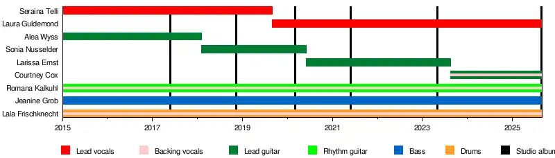 Romana Kalkuhl, guitarist with Atlas & Axis, had been looking for a cast for an all-female metal band for a long time. Over the years, she got to know different musicians and finally found the first cast with bassist Jeanine Grob, drummer Lala Frischknecht and lead singer Seraina Telli. In 2016, guitarist Alea Wyss completed the lineup. First came a self-titled single, which was also the band's first demo. This was voted "Demo of the Month" in both Rock Hard and Metal Hammer.[1][2]